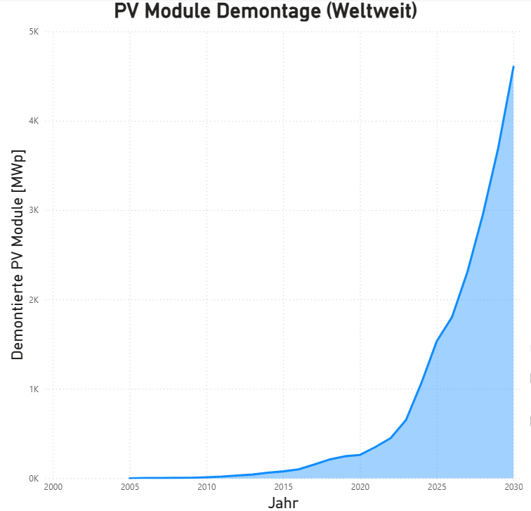 - Modellierte Recycling- und Rohstoffmengen aus dem Rückbau von PV-Anlagen – mit Projektionen bis 2030